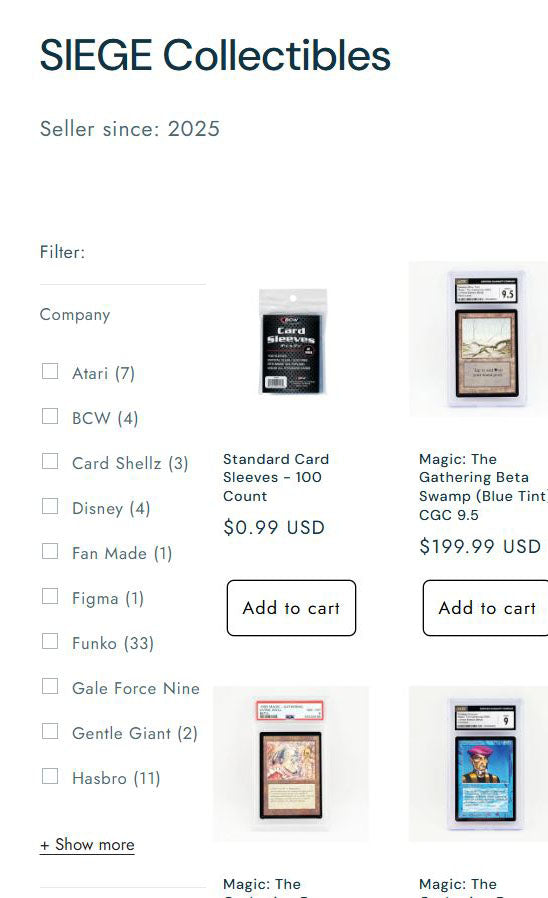 Items on SIEGE Collectibles are priced a little differently than a typical ecommerce site. Prices are not always based on the current market value of an item, but at a price that factors in both the monetary and sentimental value of an item. Many collectibles will be priced reasonably, maybe even under market value. But many items will be priced outrageously higher than market value, taking into account how badly the seller wants to keep it. Some prices will be ridiculous, and I think that will be part of the fun.